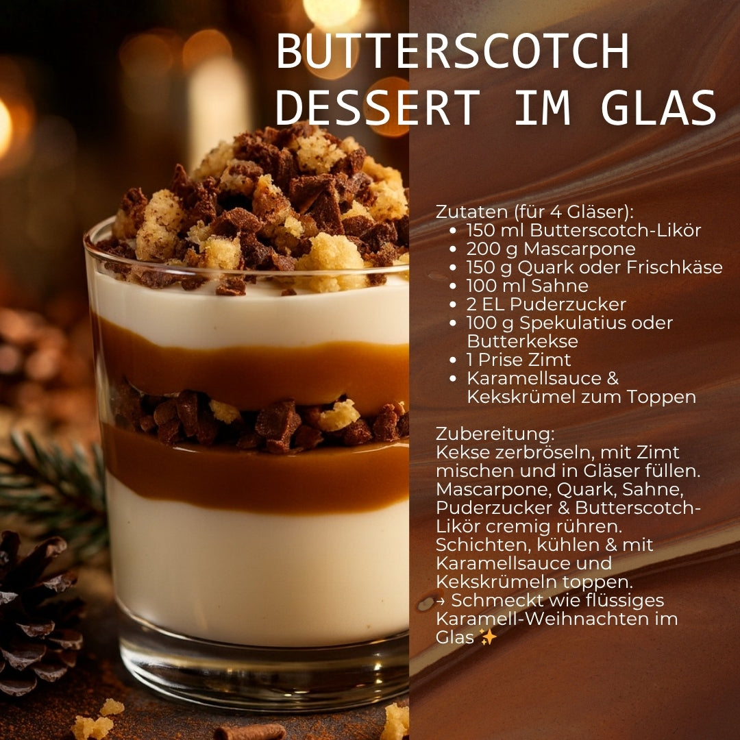 Ob pur auf Eis, im Kaffee, als Basis für Winter-Cocktails oder zum Verfeinern von Desserts und Gebäck – unser Butterscotch Likör ist ein echter Allrounder für die Feiertage und darüber hinaus.