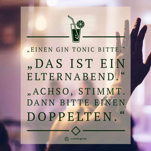 ❝ Einen Gin Tonic bitte.“„Das ist ein Elternabend.“„Achso, stimmt. Dann bitte einen doppelten.❞